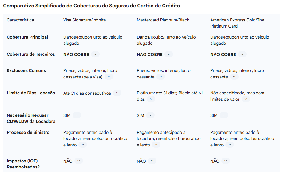 Comparativo Simplificado de Coberturas de Seguros de Cartão de Crédito