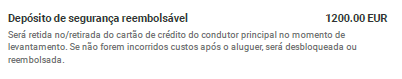 O valor da caução ficará bloqueado no cartão de crédito durante todo o período da locação, o que significa que esse limite não estará disponível para outras transações ou emergências.